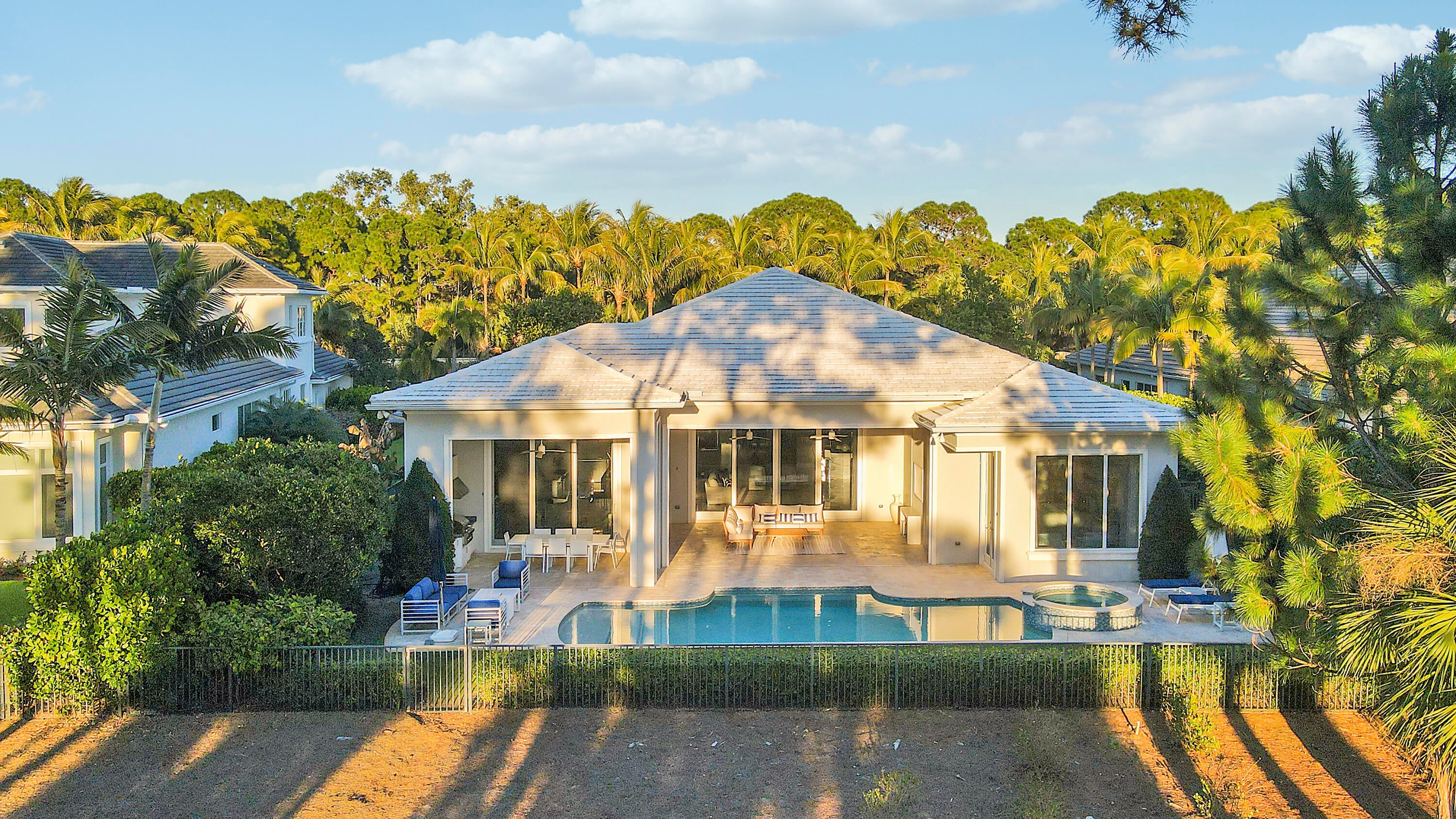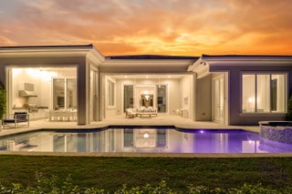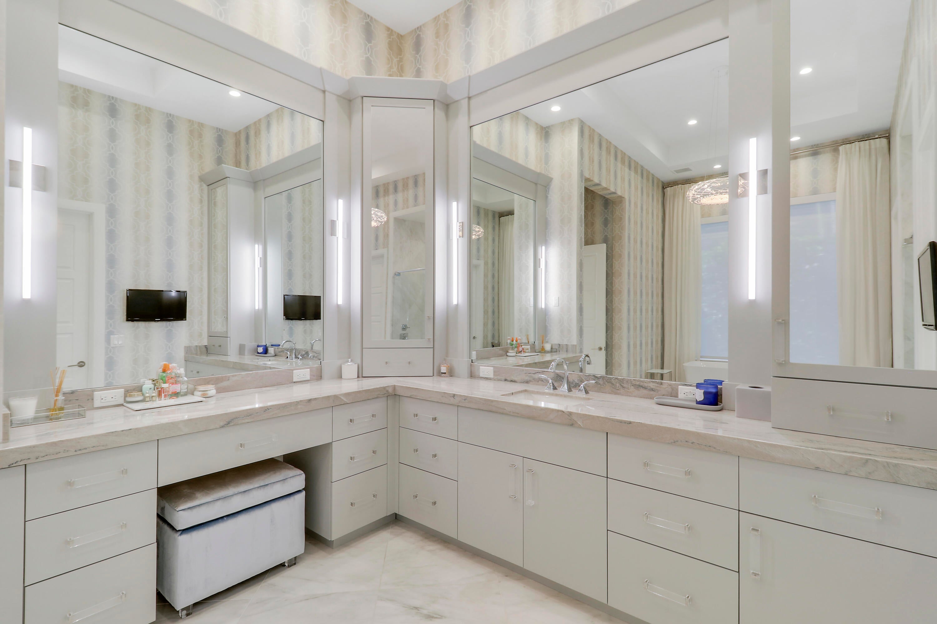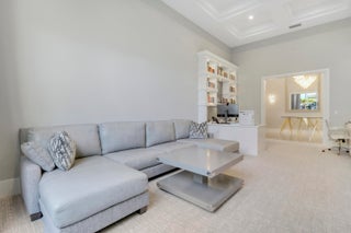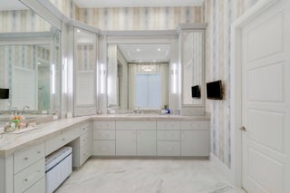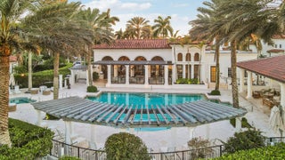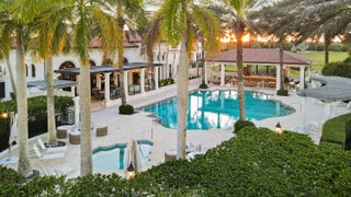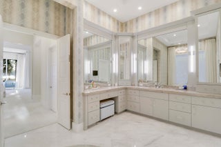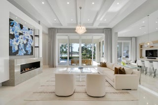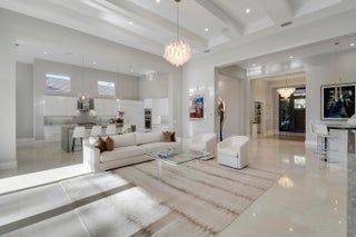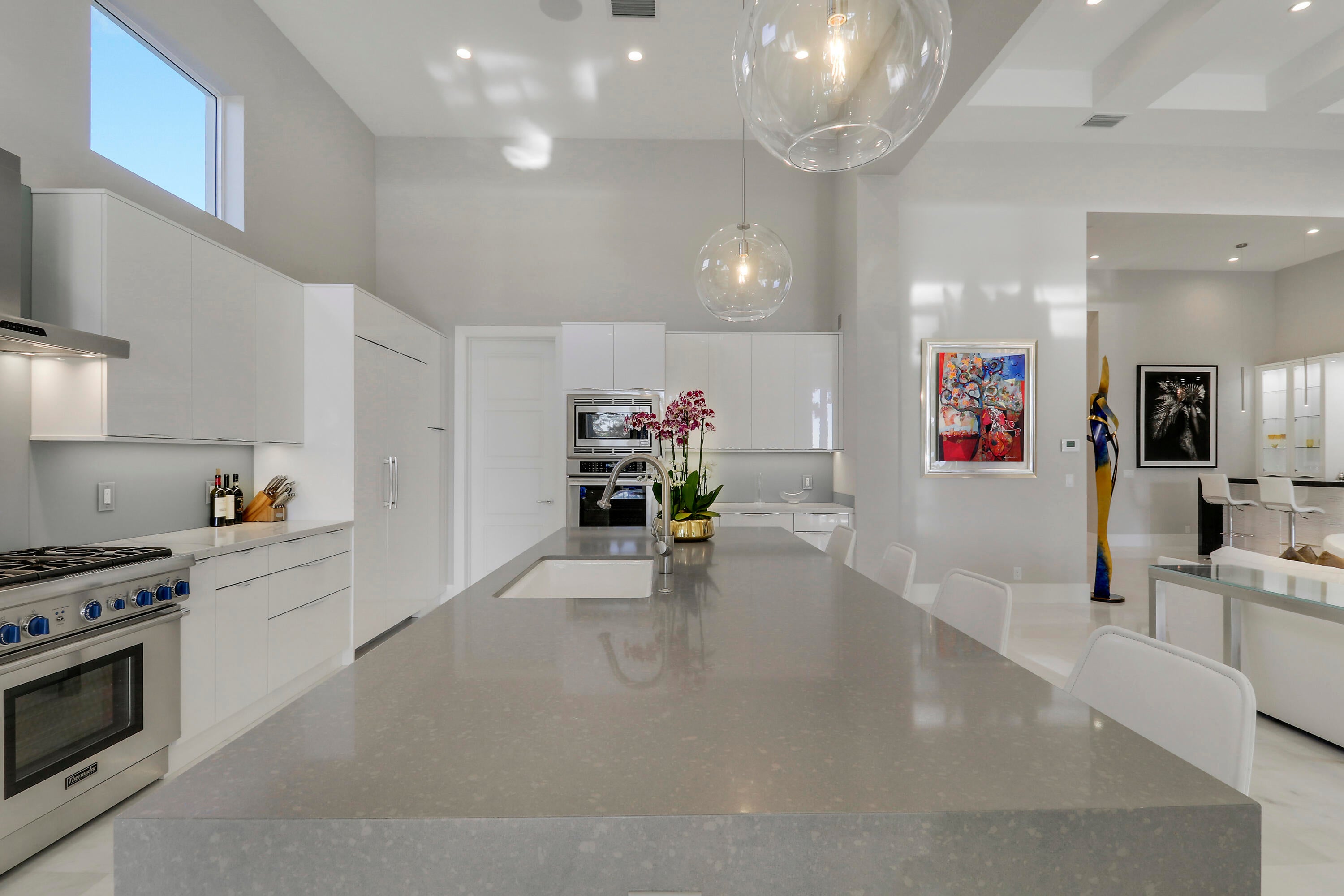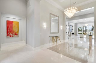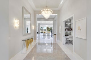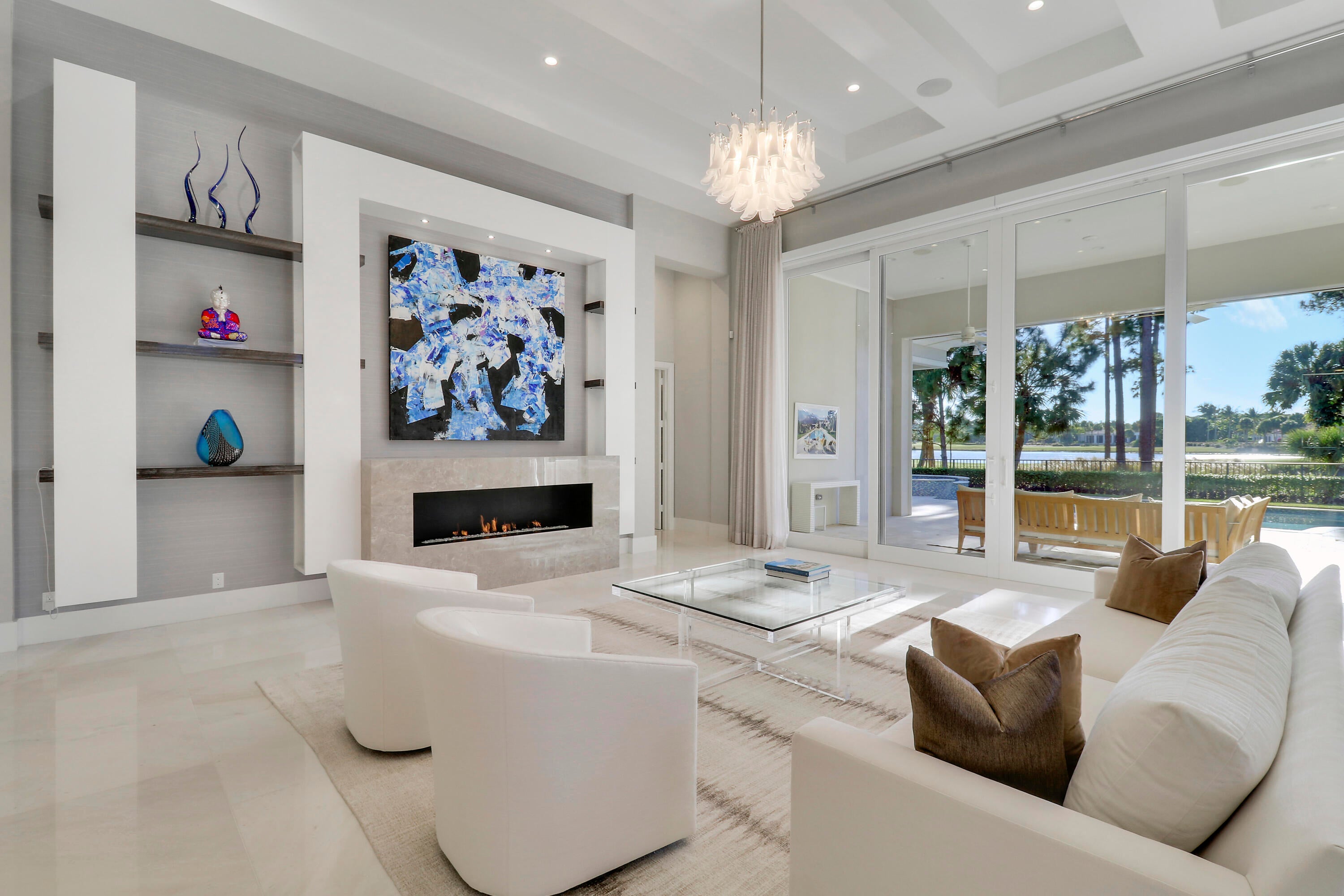 Spectacular 1-story residence by Mustapick Homes on a .39 acre lot featuring 4 full bedroom suites + a club room, 5.5 baths, epic golf and lake views, 36x36'' Diamond White marble floors, Imported Italian kitchen w/ Thermador appliances, Stormy Sky and Calcutta Quartz counter tops, wet bar, and coffered ceiling heights up to 15'. The primary suite is enormous with a sitting room. Separate his and her baths and closets. Her built-out closet is the size of a guestroom! The outdoor area features a summer kitchen, phantom retractable screens, heated pool & spa, and some of the best views in Old Palm. This gorgeous home is being offered furnished so you begin enjoying this home and the Old Palm right away. This is a rare offering and will sell quickly. Don't miss your opportunityAdditional Features: Air conditioned garage European White Oak Floors in the guest suites
