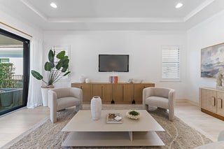 Experience effortless luxury in this beautifully appointed & highly sought-after Hudson model, perfectly positioned on a premium lot within Artistry. This carefully curated home offers 4BR + den (currently used as a 5th BR),4 Full BA plus an oversized loft.Enjoy high vaulted ceilings, Stunning RevWood flooring, custom lighting fixtures, custom closet Systems, Plantation shutters & the list goes on.The chef's kitchen offers Quartz countertops, Custom Cabinetry, an oversized island & top-of-the-line GE gas appliances.The covered lanai w/ roll-down screens & a fully equipped summer kitchen overlooks the gorgeous pool & spa, creating the perfect setting to relax, entertain, and dine under the stars. The turfed backyard extends the living space and offers a low-maintenance retreat. A MUST SEE