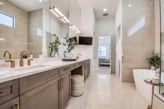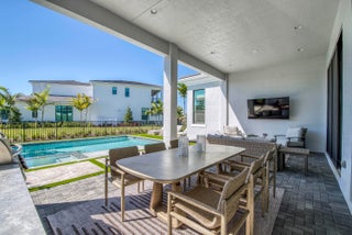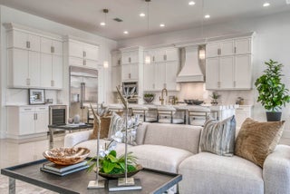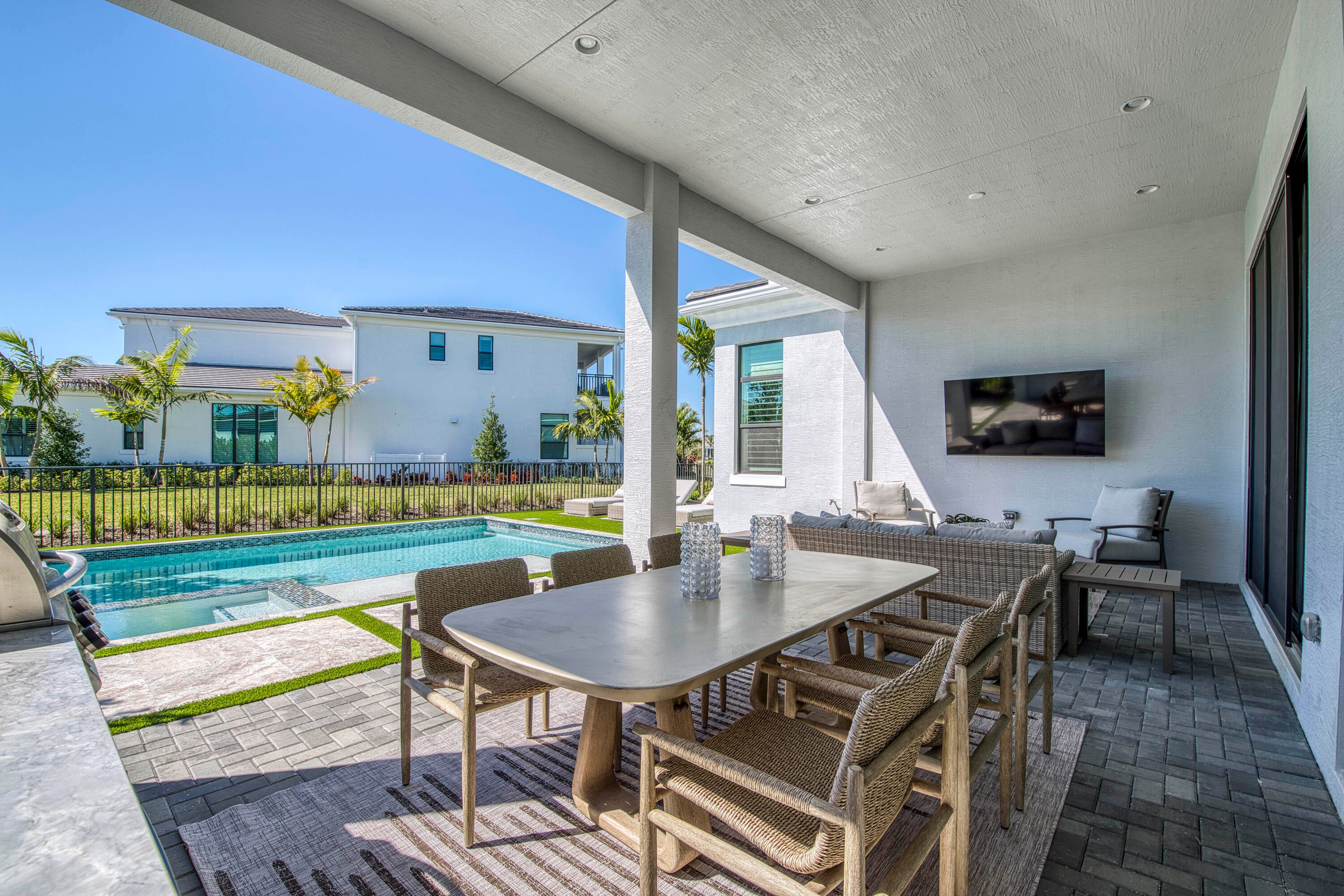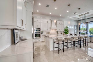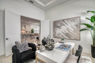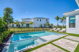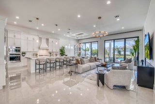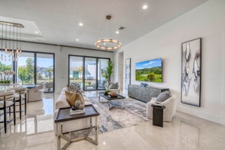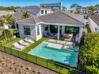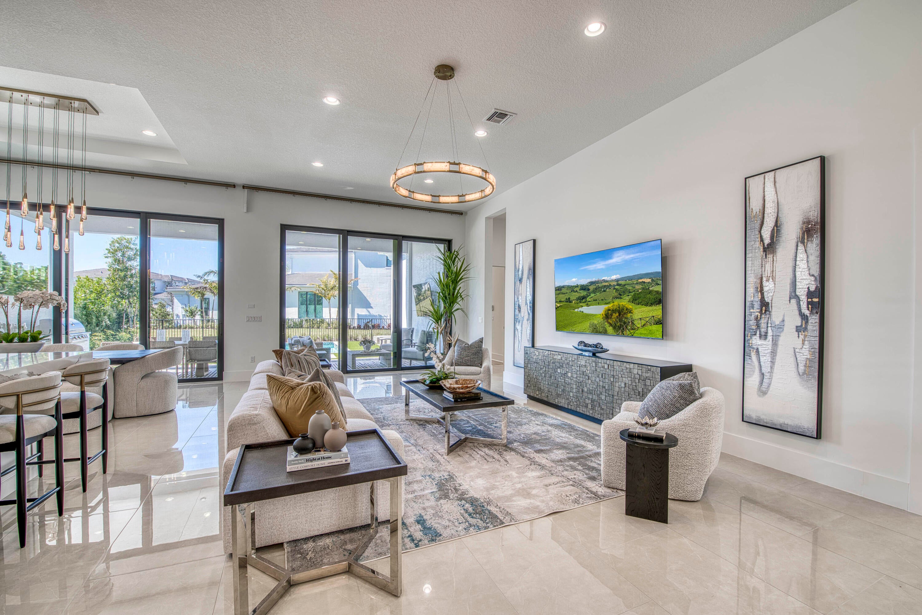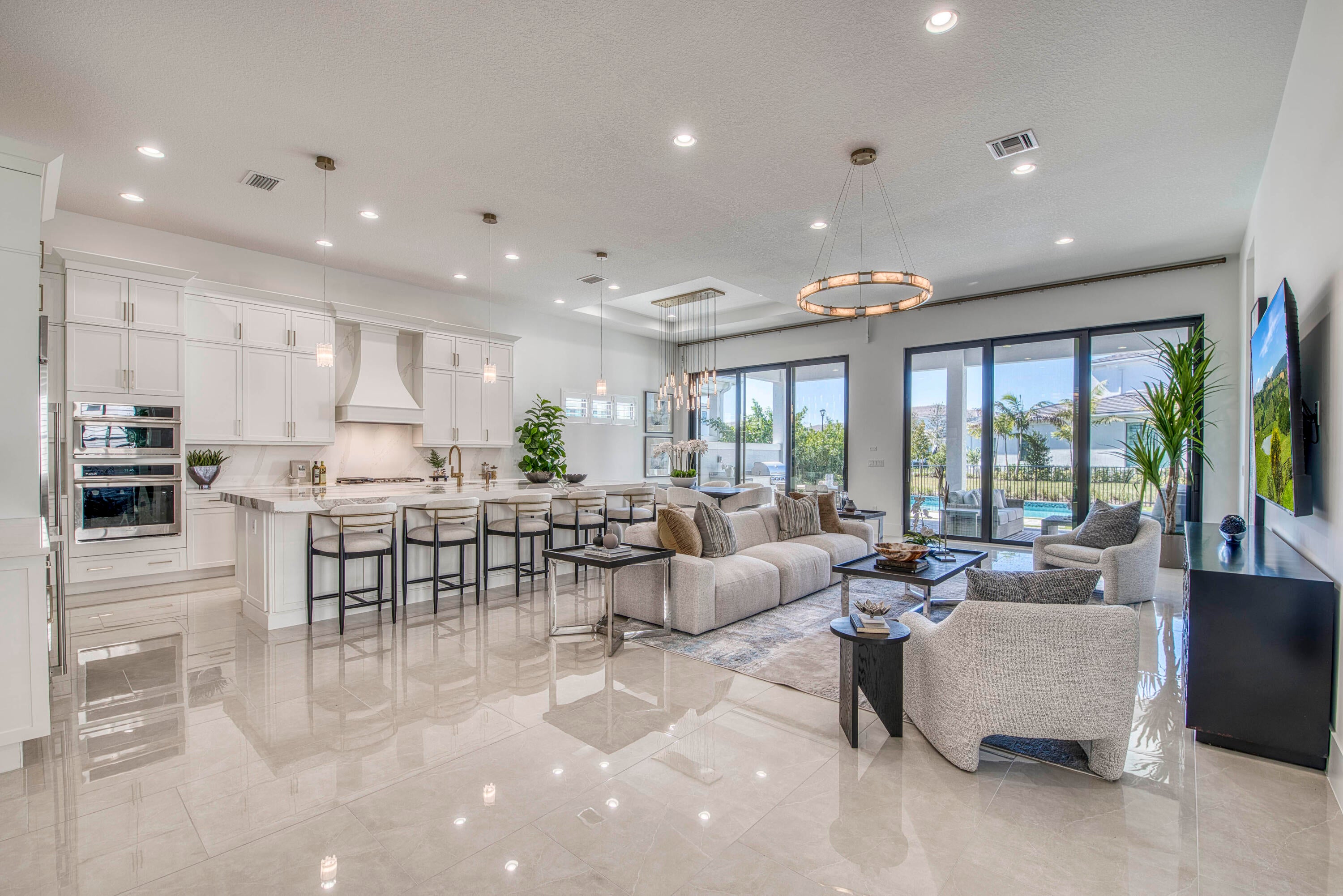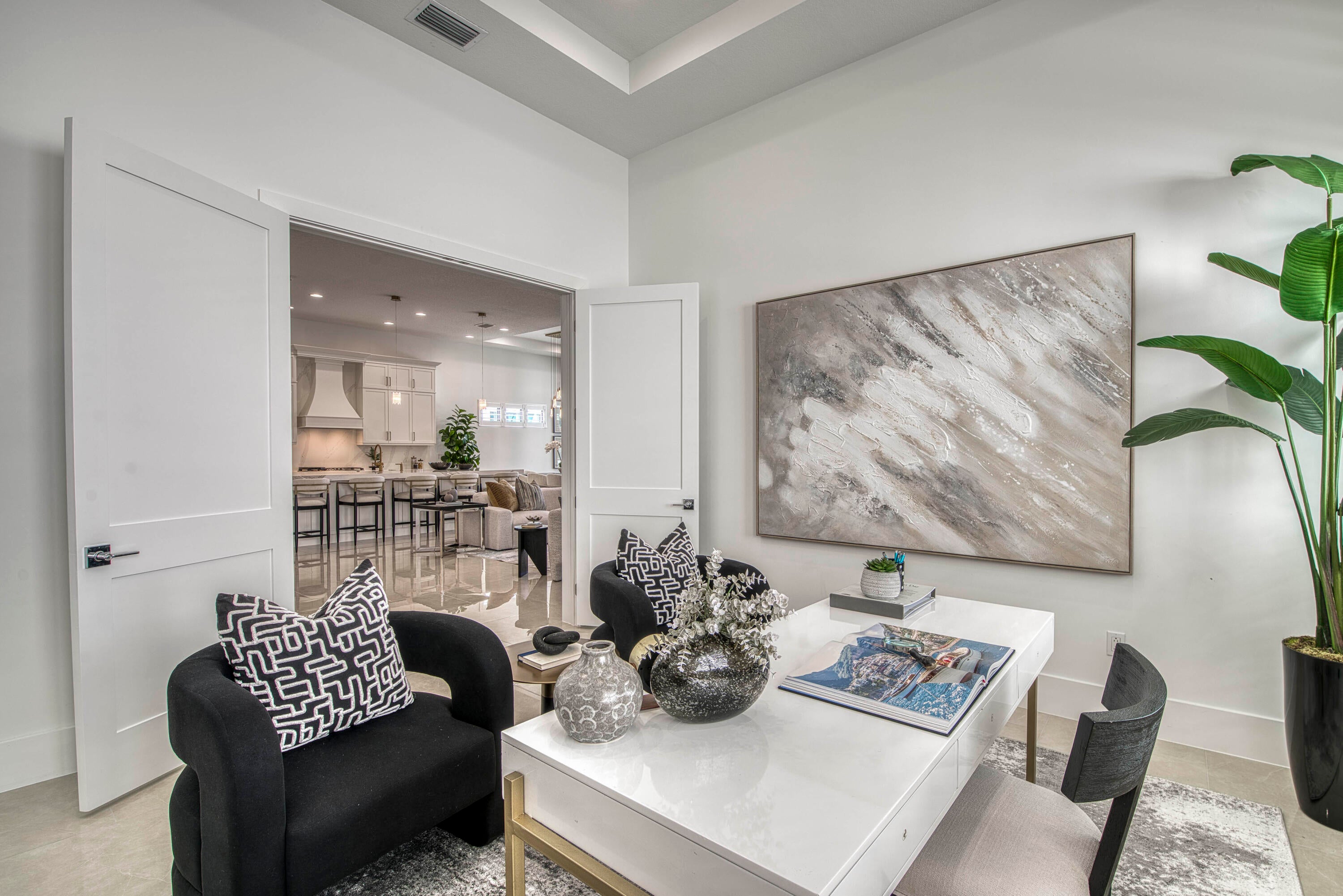 Welcome to this exquisite new construction residence in the gated community of Artistry in Palm Beach Gardens, where modern design and elevated finishes converge in a thoughtfully curated one-story floor plan. Offering 3 bedrooms, 3.5 baths, a private office, and a 3-car garage across 2,976 square feet under air, this home was crafted for both refined living and effortless entertaining. A seamless open layout unites the living, dining, and kitchen spaces, truly the heart of the home, accentuated by large-format tile flooring, custom lighting, 5'' baseboards, and a sophisticated linen-toned palette. The designer kitchen showcases custom white wood cabinetry, coordinating quartz countertops and backsplash, a premium stainless steel appliance package with gas cooktop, separate beverage